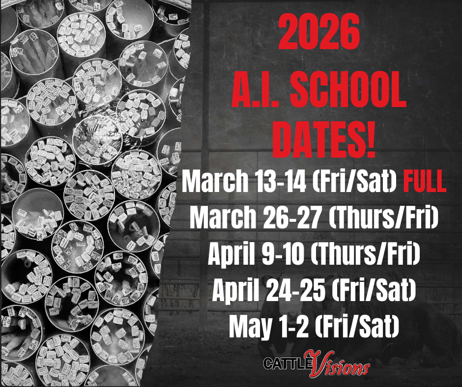 Students will travel to Clark, Missouri, to participate in a two-day school focused on learning how to artificially inseminate beef cattle. Each session combines hands-on experience with classroom instruction, running from 8:00 am to 5:00 pm both days. Participants are encouraged to bring extra clothes and shoes, in case their original outfit gets dirty. The cost to attend is $650 per person, with a discounted rate of $625 per person available for groups of two or more registering together. A $350 deposit is required before the school begins, with the remaining balance payable either in advance or upon arrival. Snacks, drinks, and a catered lunch will be provided each day. Class sizes are limited and tend to fill quickly, so early registration is encouraged. Upon completion of the course, students will receive a certificate of completion and a 10% discount on their first order of Cattle Visions semen priced at $50 per unit or less. (Different discounts may apply for higher-priced bulls; supplies and clearance semen are not included.